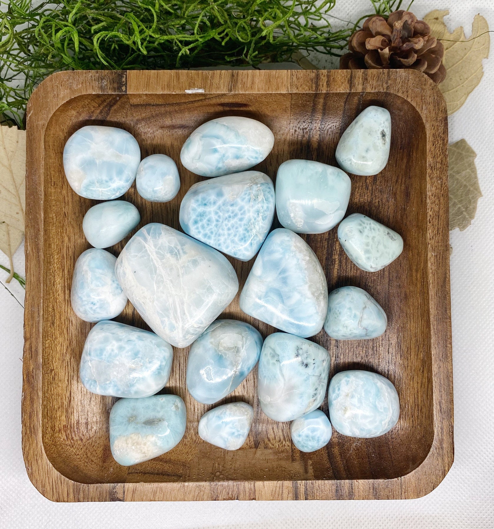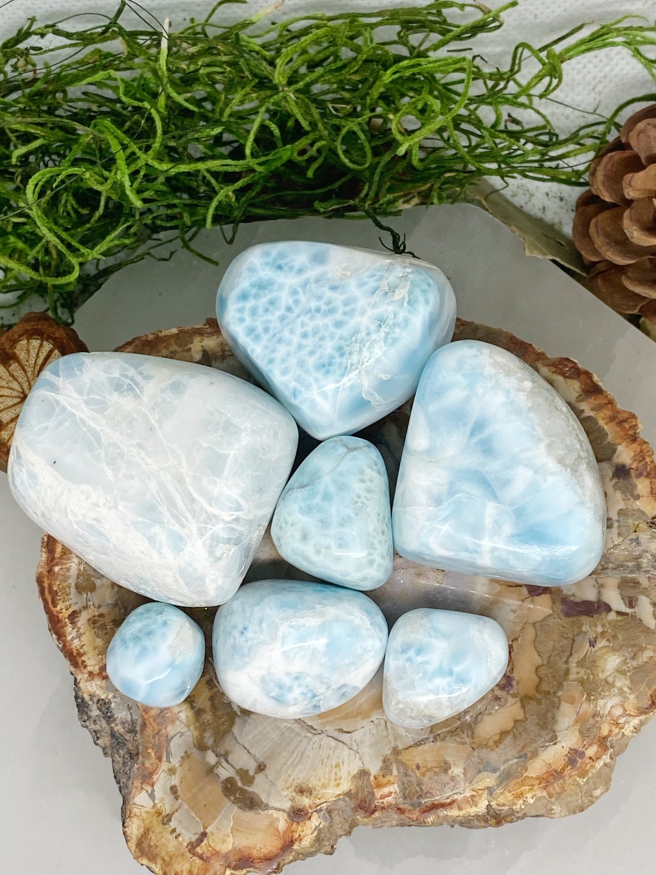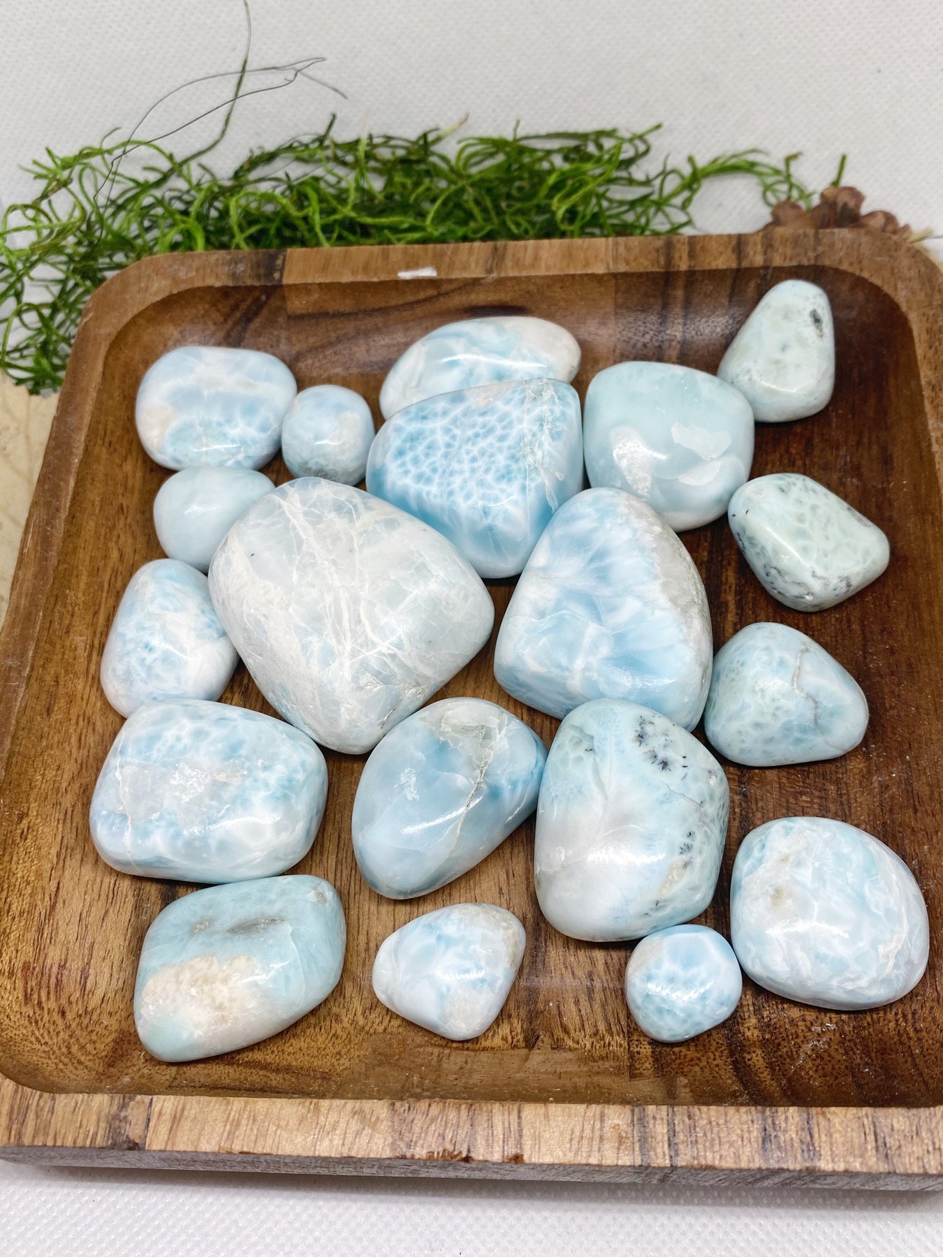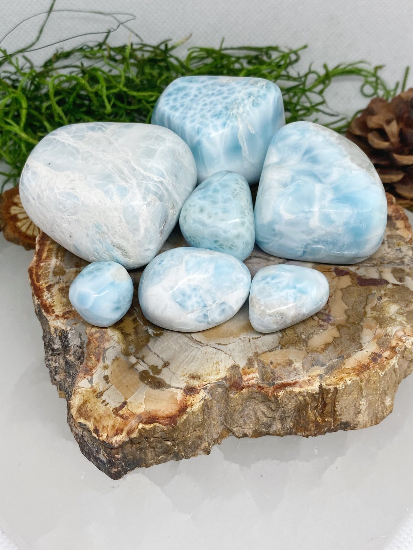 Larimar is known to enlighten and heal on an emotional, mental, and spiritual plane. It also facilitates manifestation and wisdom. Larimar is an earth-healing stone and connects with nature counteracting imbalances in earths energy.