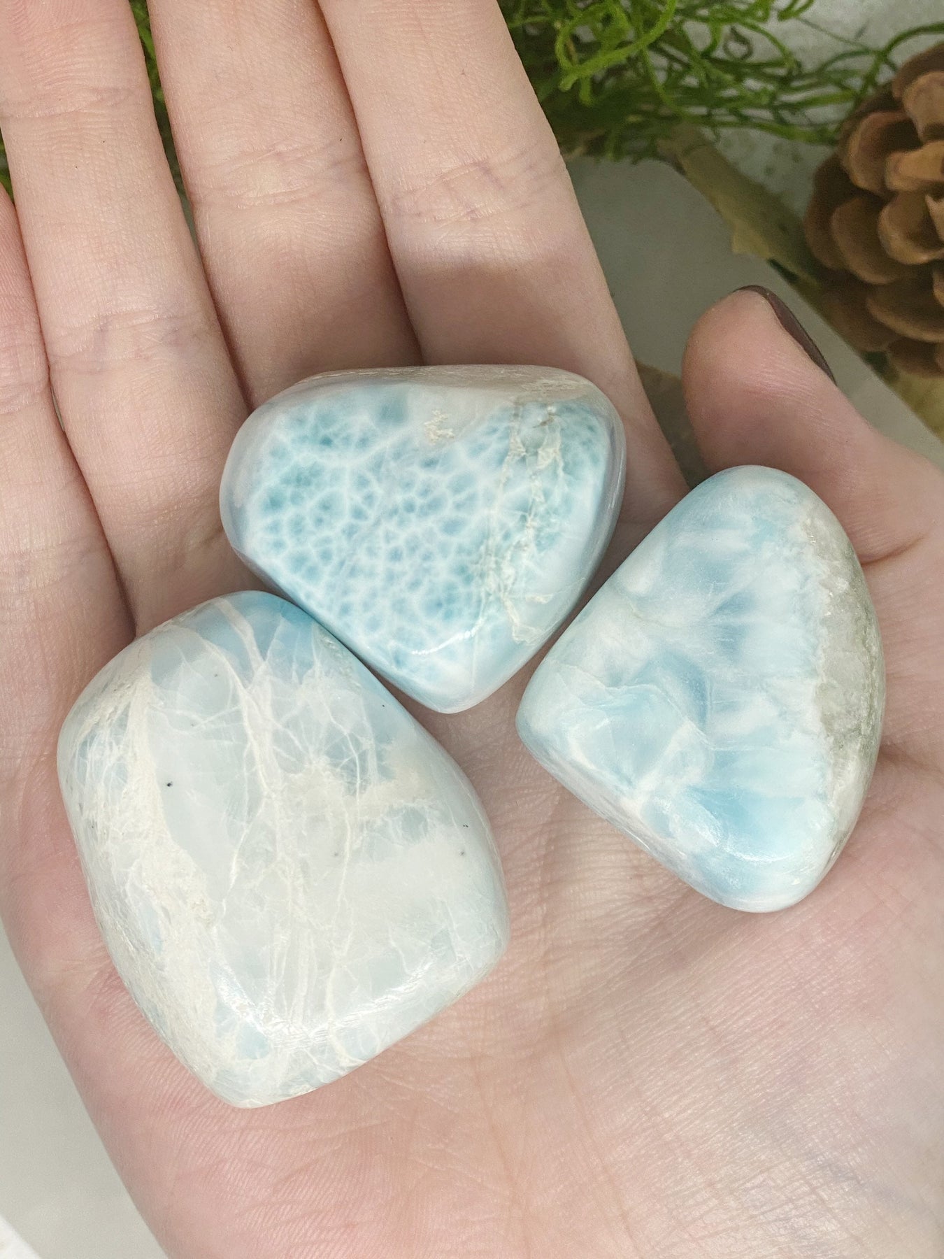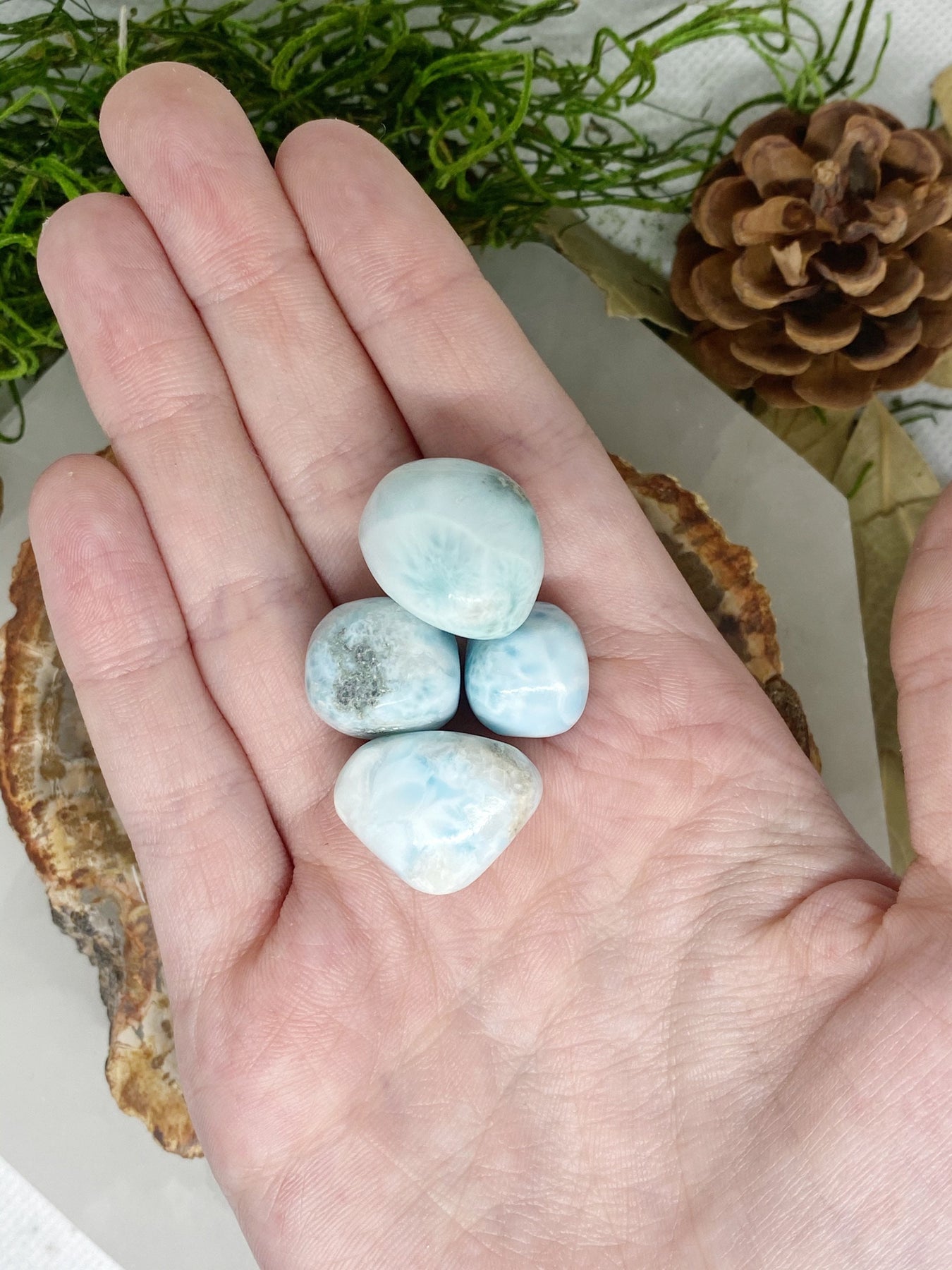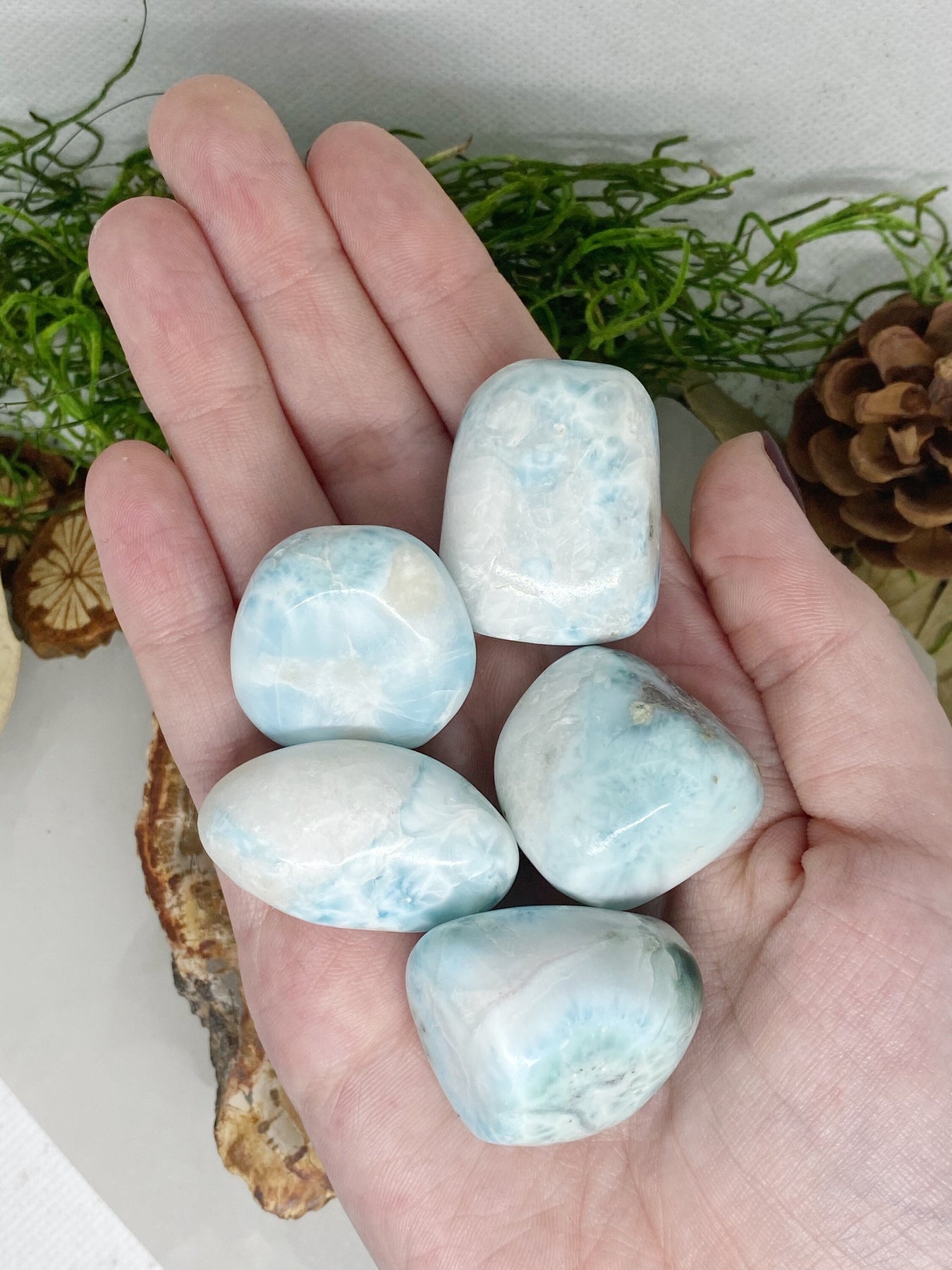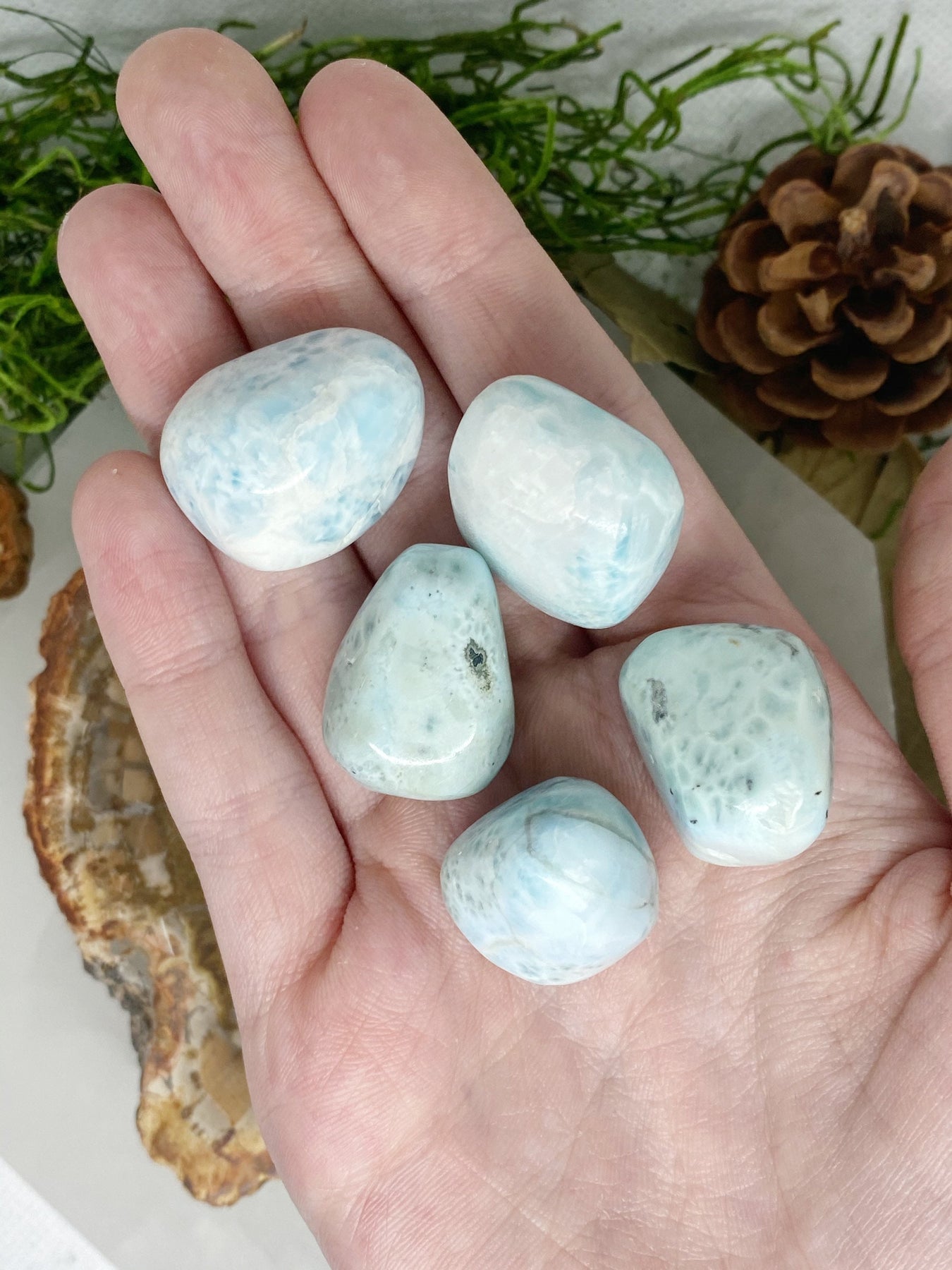 Larimar is known to enlighten and heal on an emotional, mental, and spiritual plane. It also facilitates manifestation and wisdom. Larimar is an earth-healing stone and connects with nature counteracting imbalances in earths energy.