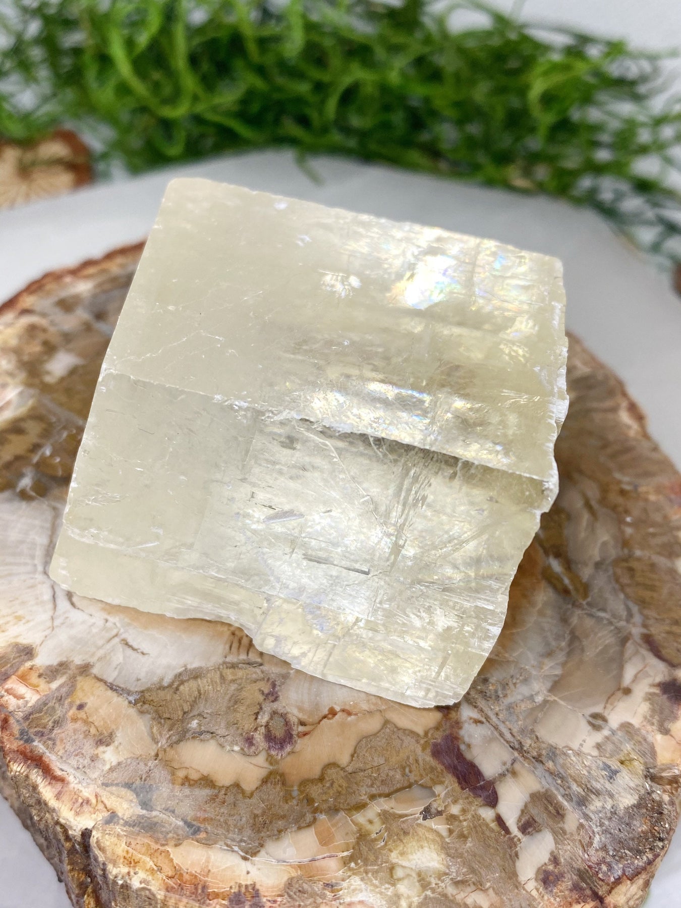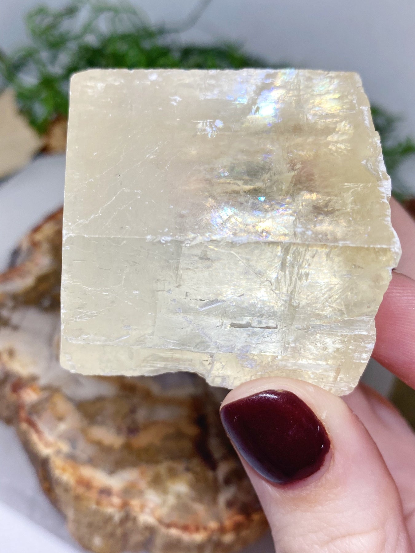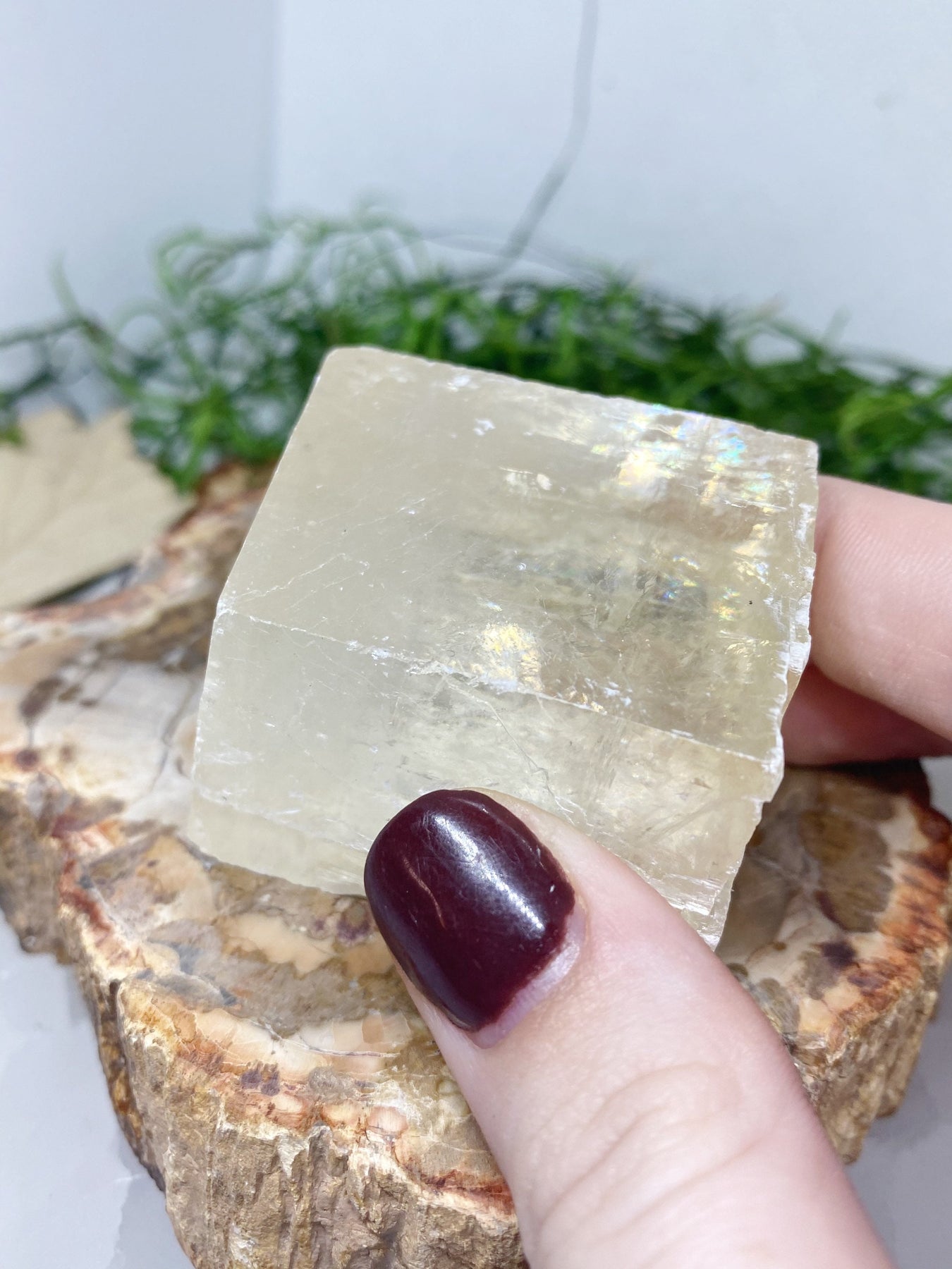 Honey calcite teaches you all about your personal power. It helps to encourage responsibility and leadership and can also help with self confidence and courage. Through personal empowerment, honey calcite encourages you to work towards your long term goals. These optical calcite reflect beautiful rainbows all throughout them!