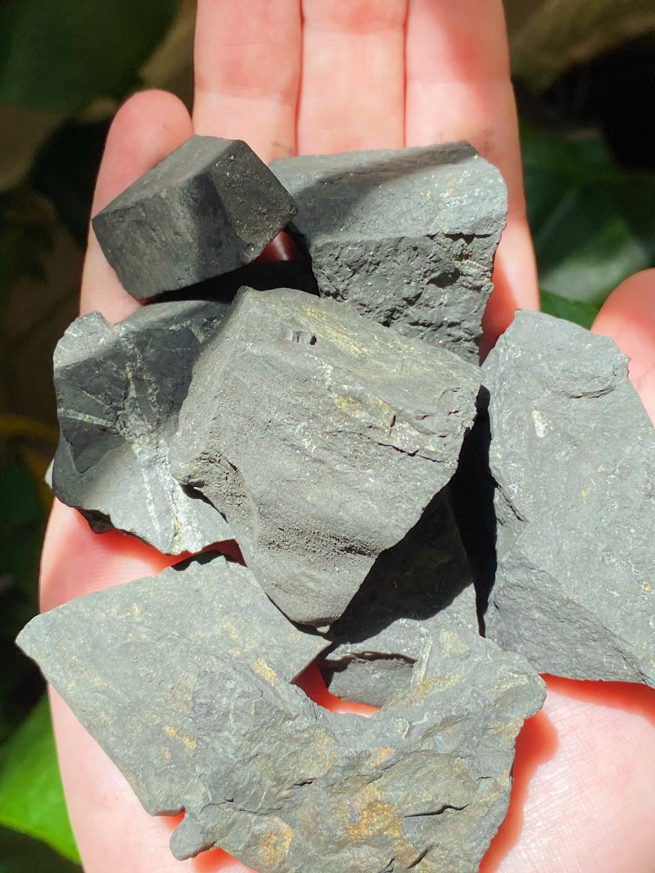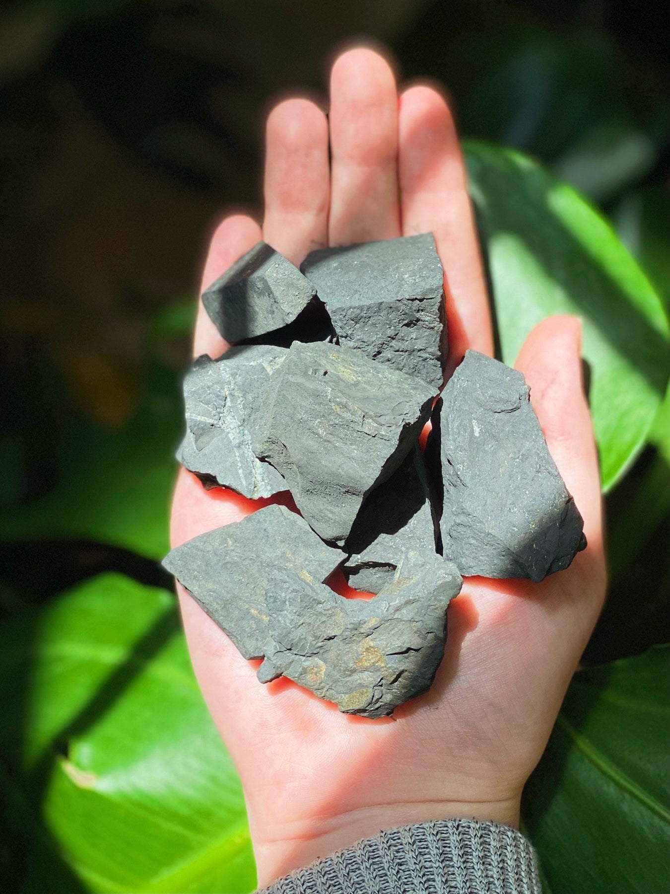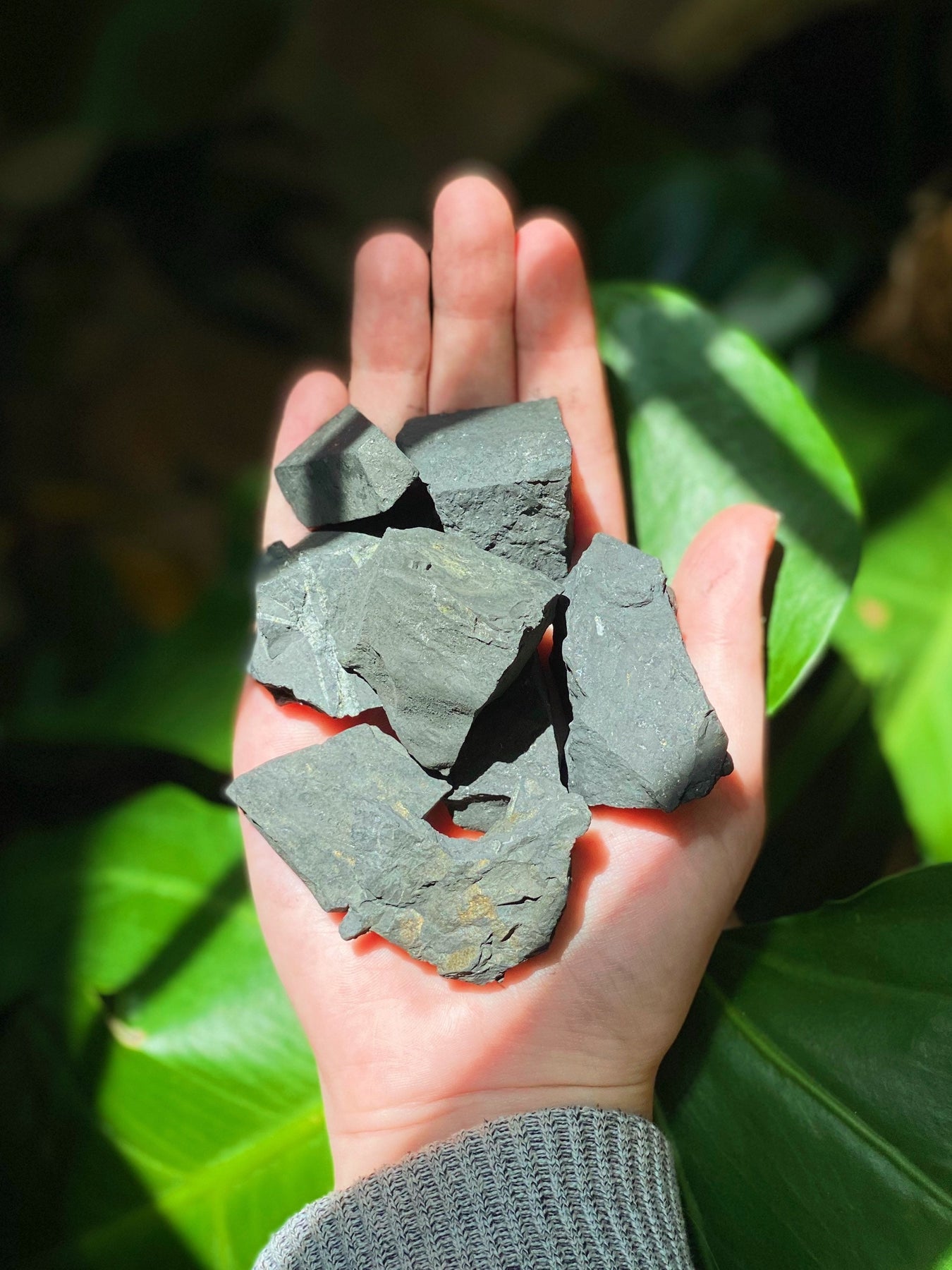 Shungite is very grounding. Its a very powerful cleanser and banishes things from your live that may be draining your energy. Shungite is also believed to reduce EMF exposure. It became popular due to claims that it could cleanse and purify water.