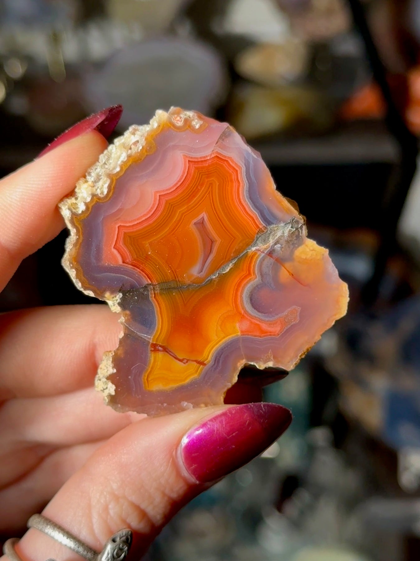 A Laguna agate displaying crisp banding and rich natural color, characteristic of material from this iconic Mexican locality, but with unique colors.Balancing · Energizing