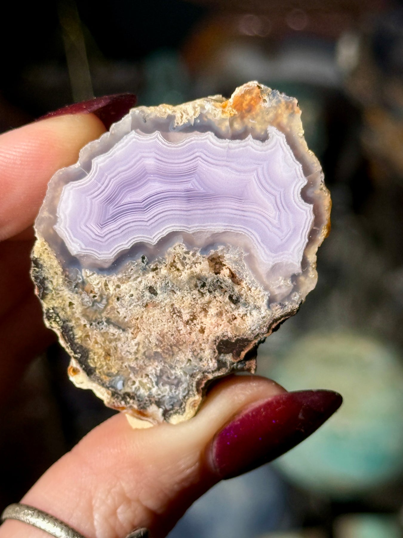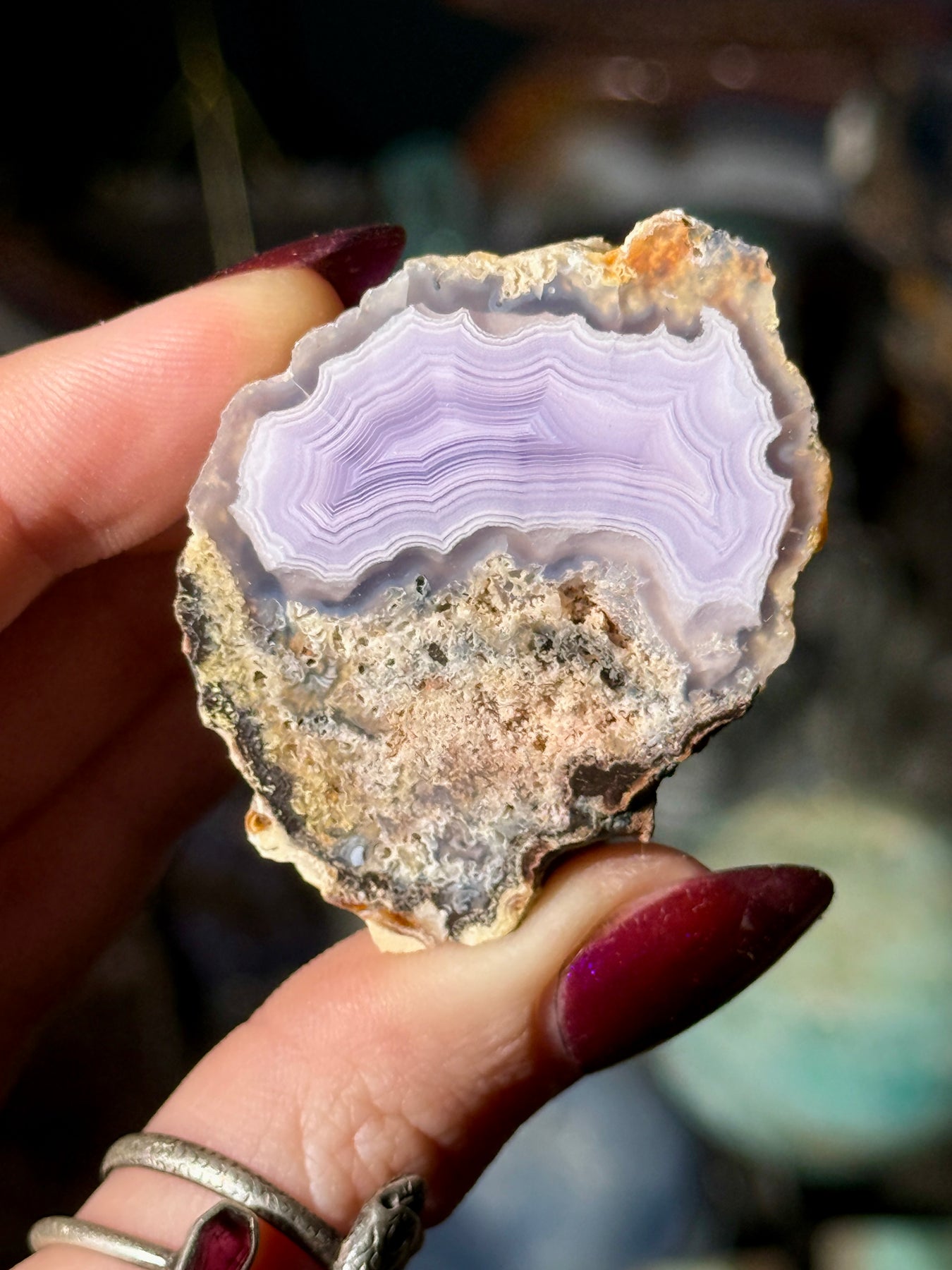 A soft lavender Laguna agate displaying delicate banding and gentle pastel coloration characteristic of this classic Mexican locality.