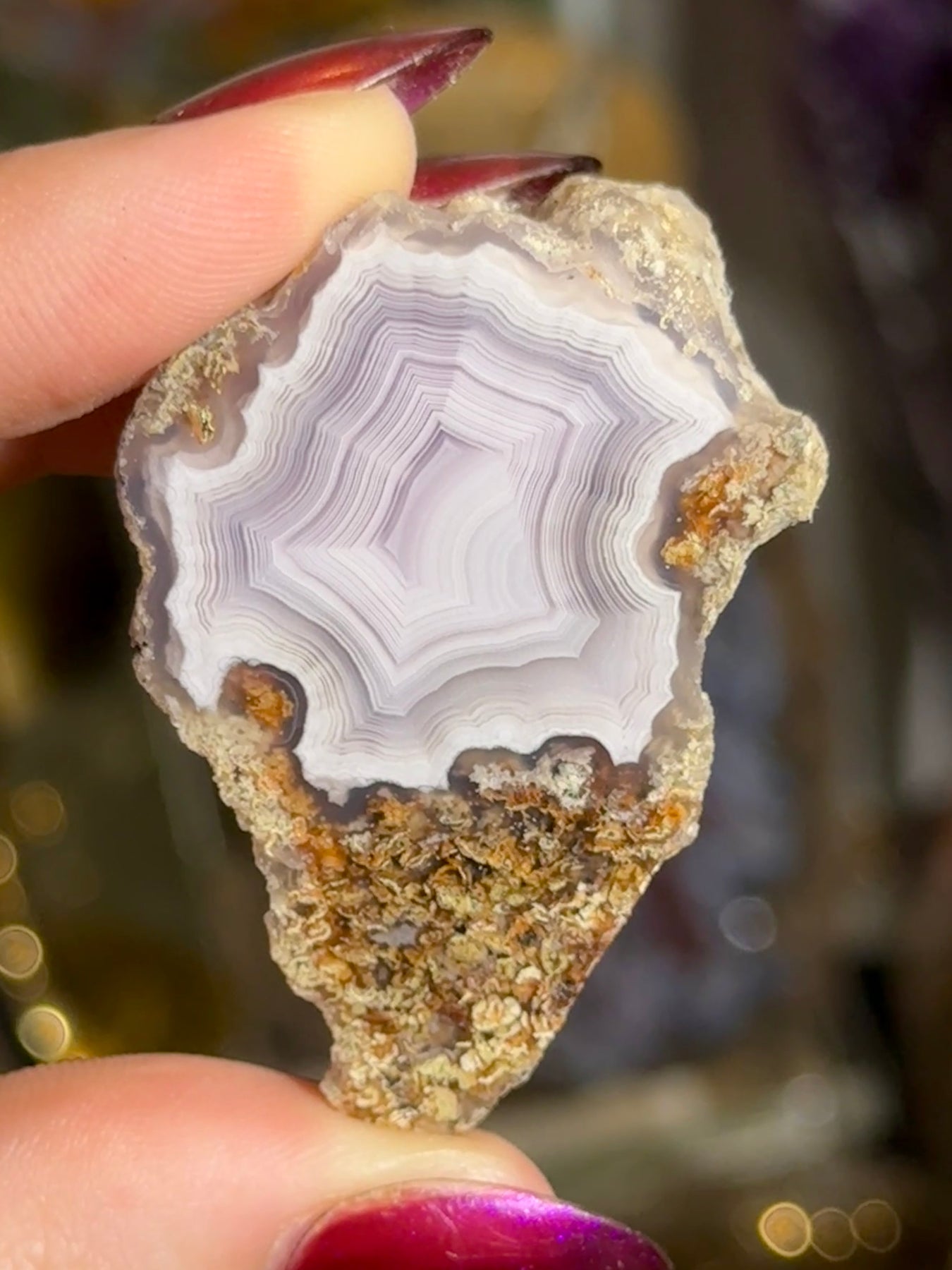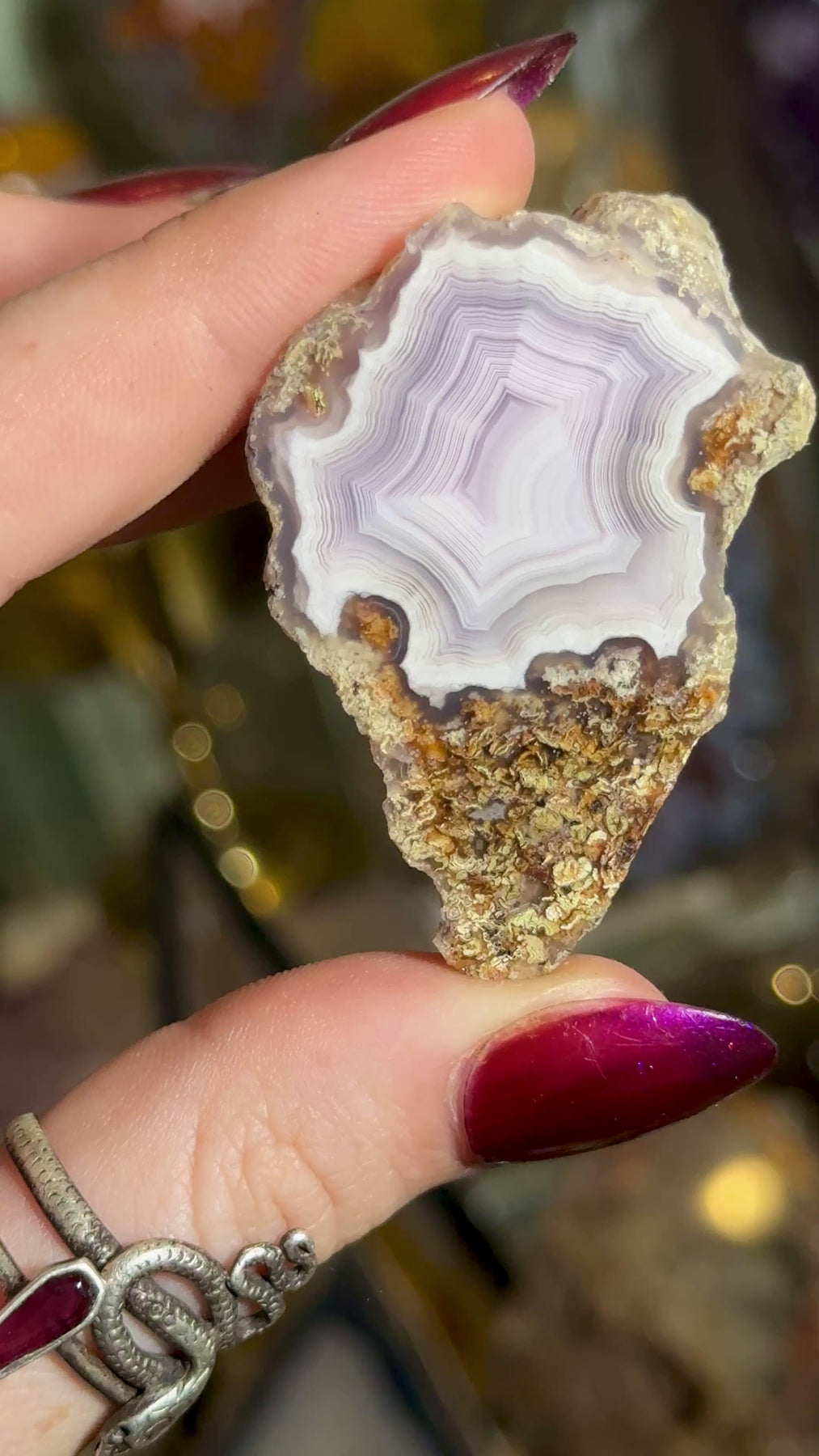 A beautifully banded Laguna agate displaying soft lavender hues with crisp, tightly layered banding. An elegant and less common color variation from this classic Mexican locality.