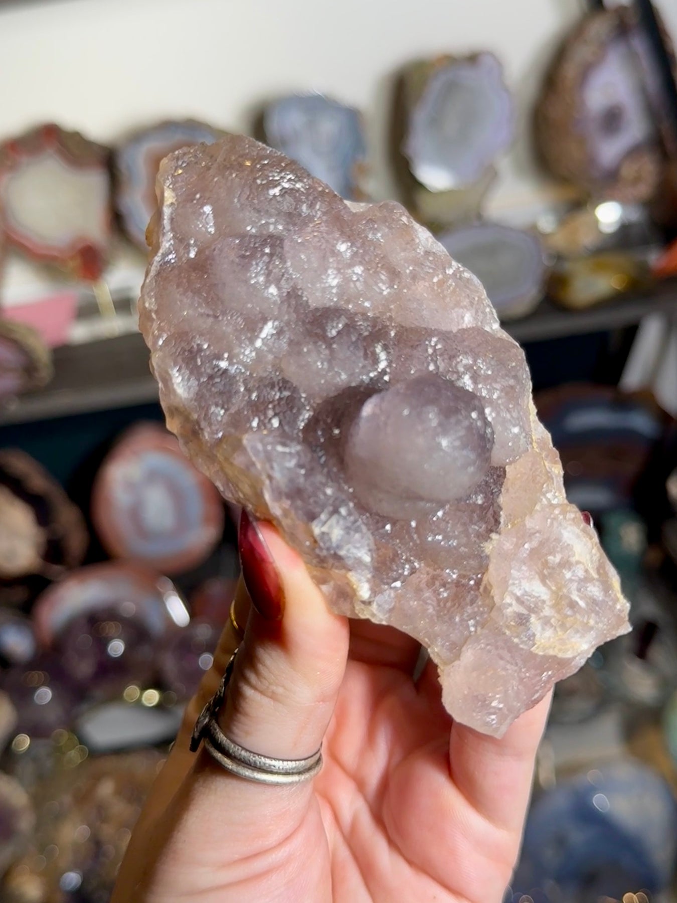 A rare botryoidal (“grape”) fluorite from China, featuring rounded, clustered crystal growth with soft luster and sculptural form