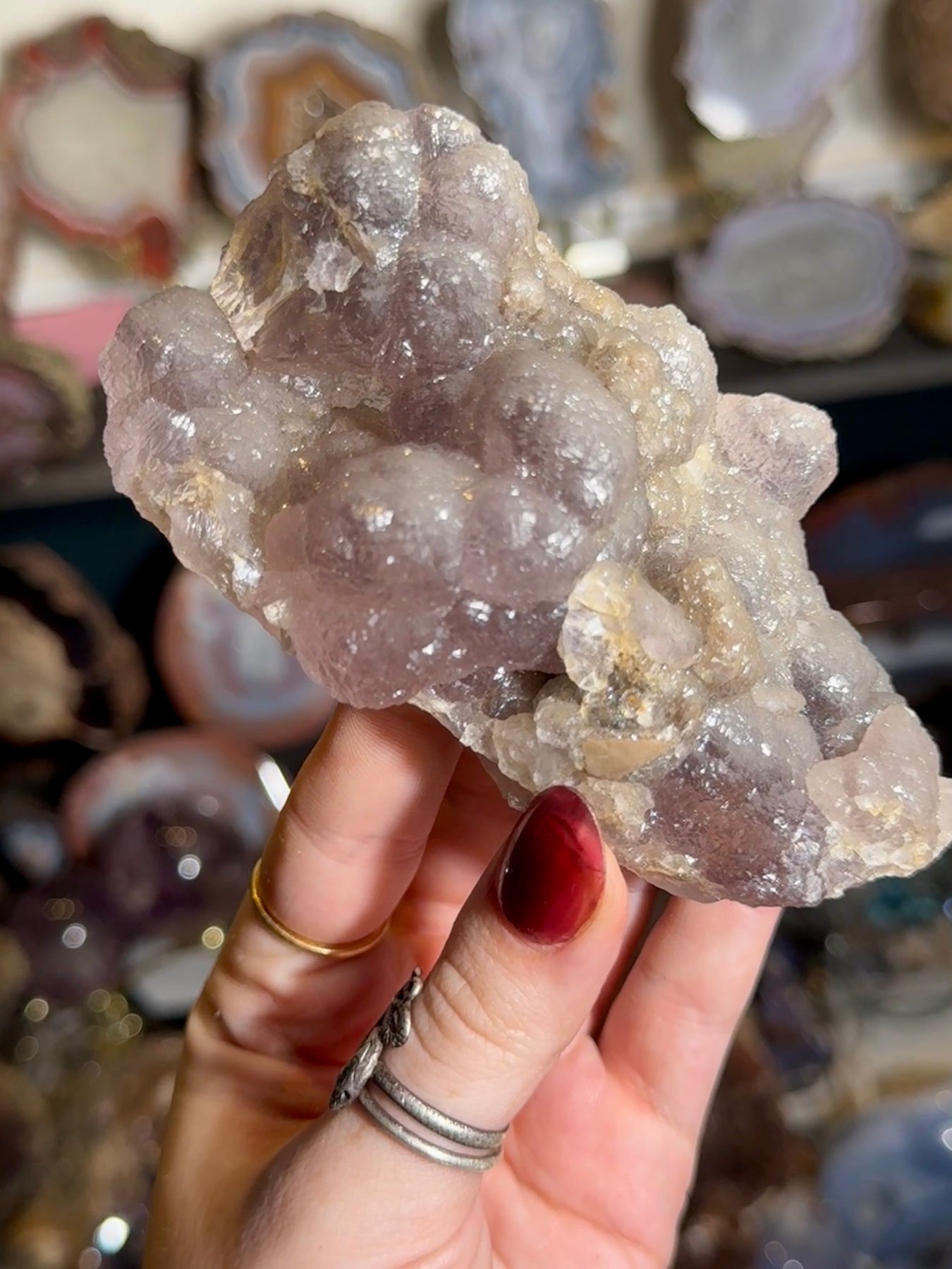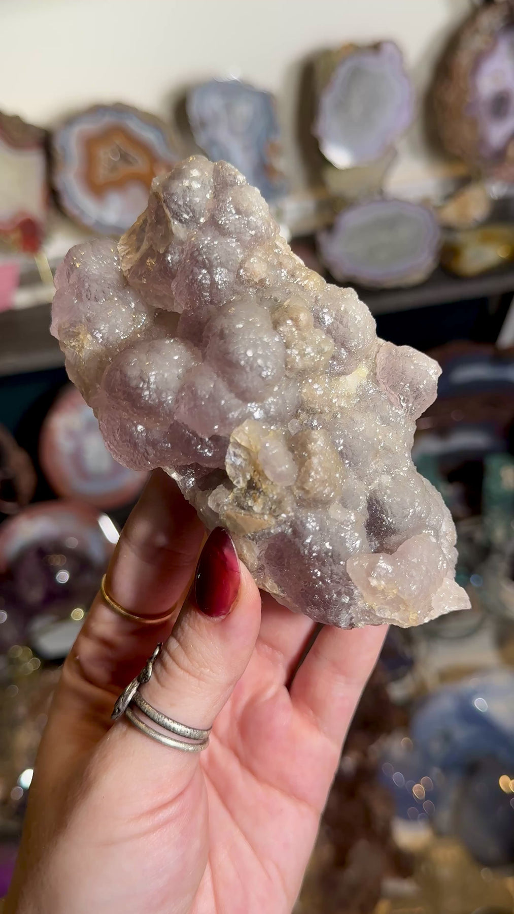 A rare botryoidal (“grape”) fluorite from China, featuring rounded, clustered crystal growth with soft luster and sculptural form