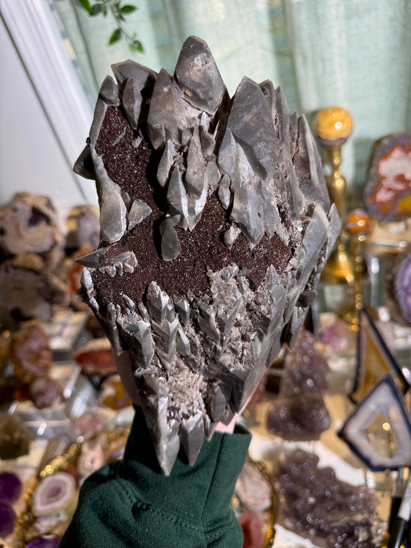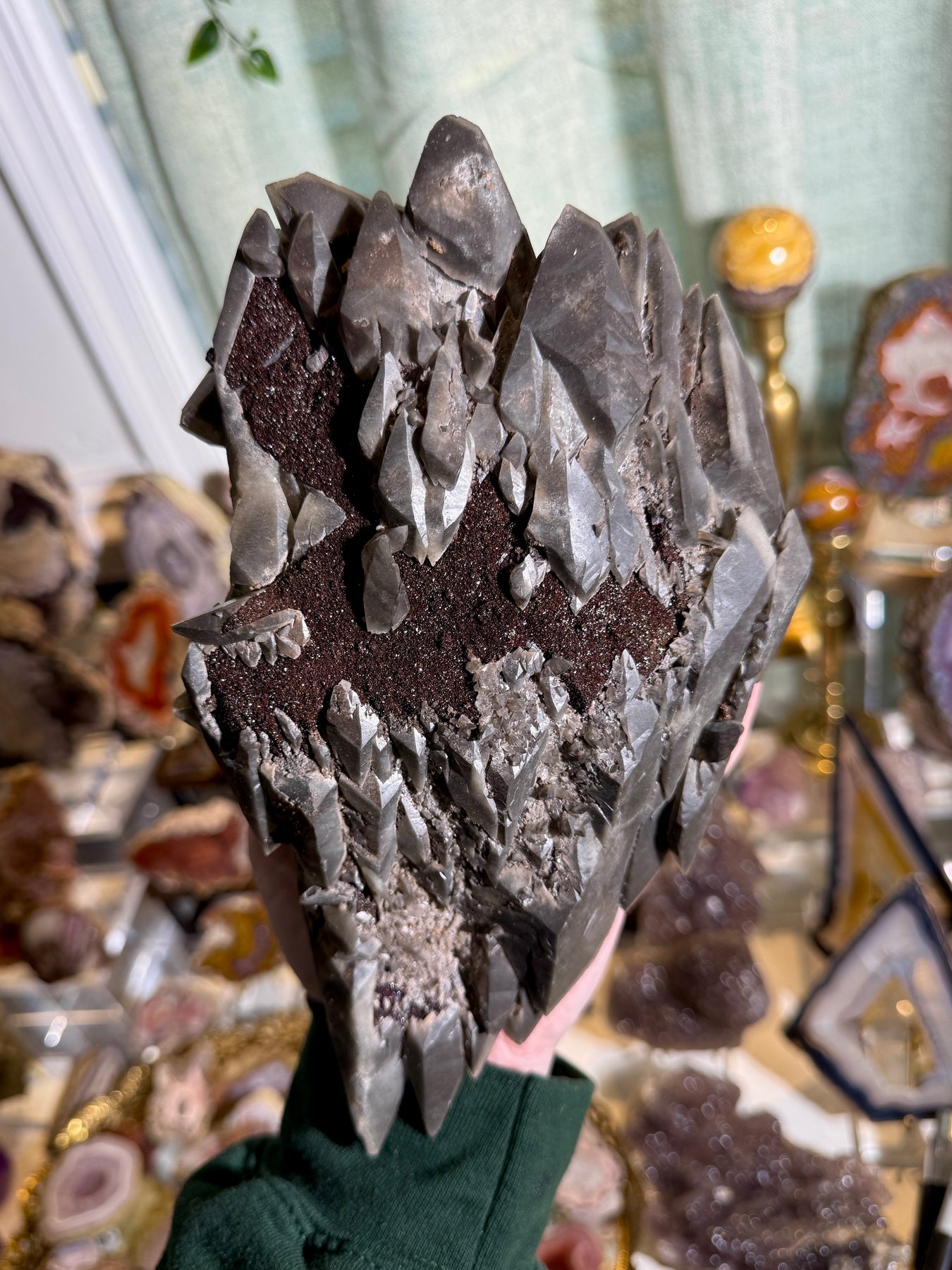 A striking statement calcite specimen from the renowned Brushy Creek Mine, featuring sharp crystal formation accented by shimmering chalcopyrite glitter. A standout example with exceptional presence from one of the most respected calcite localities in the United States.