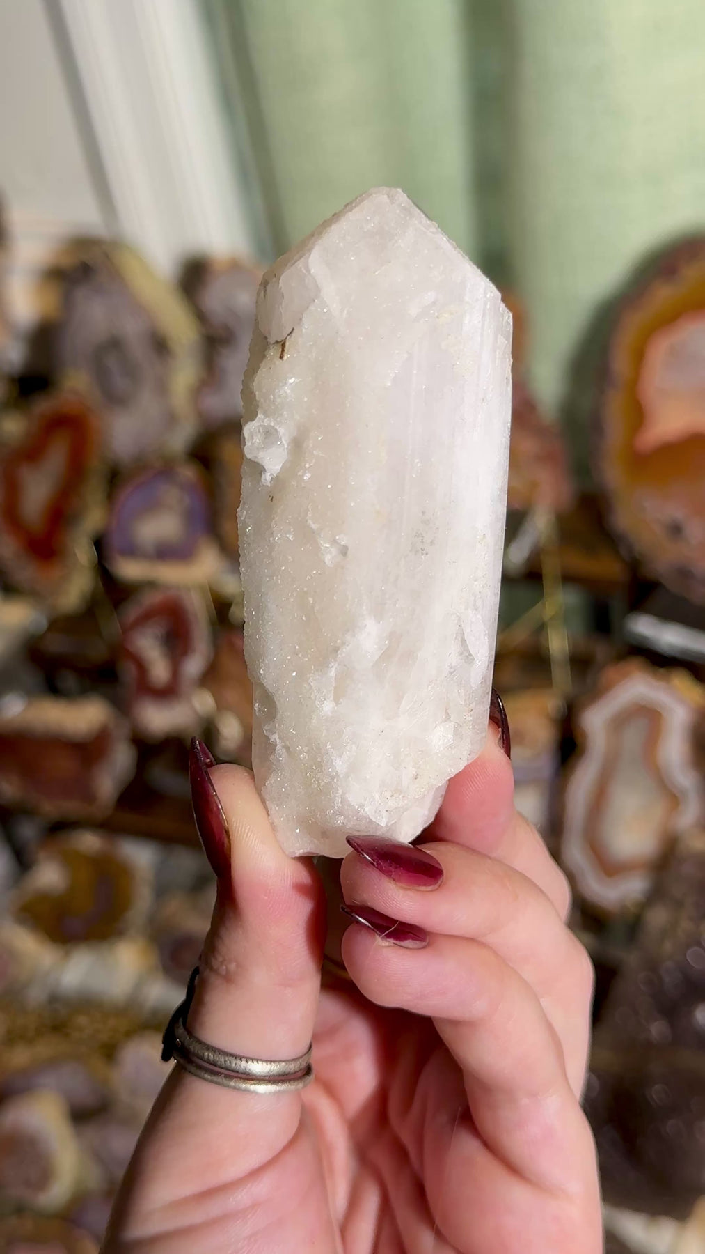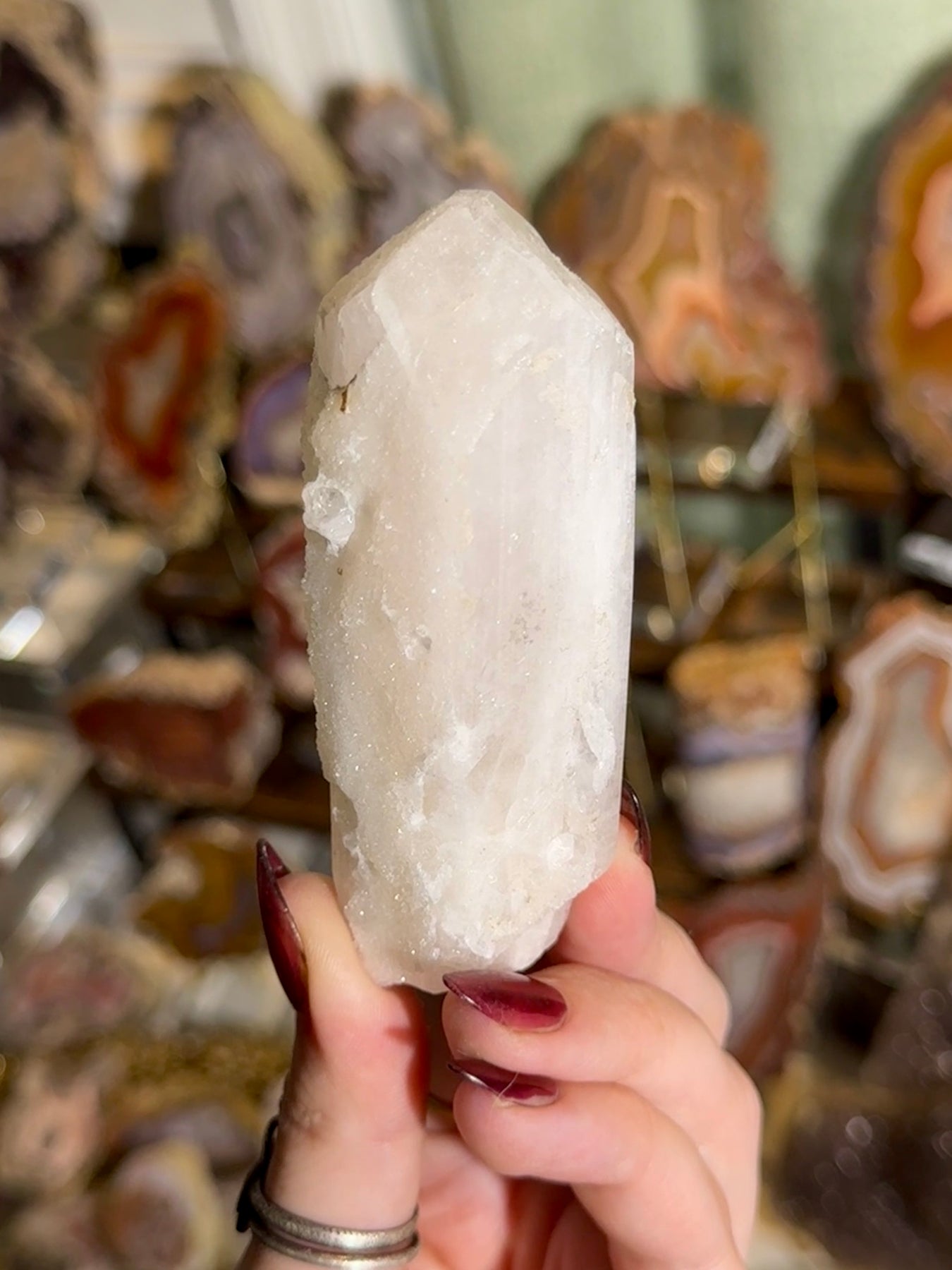 A large ballet-pink danburite specimen from Mexico, adorned with fine “sugar” calcite that adds sparkle