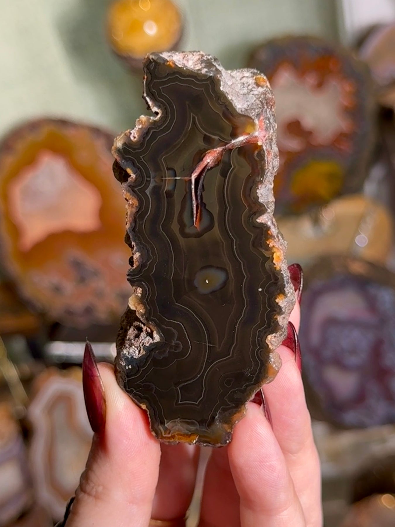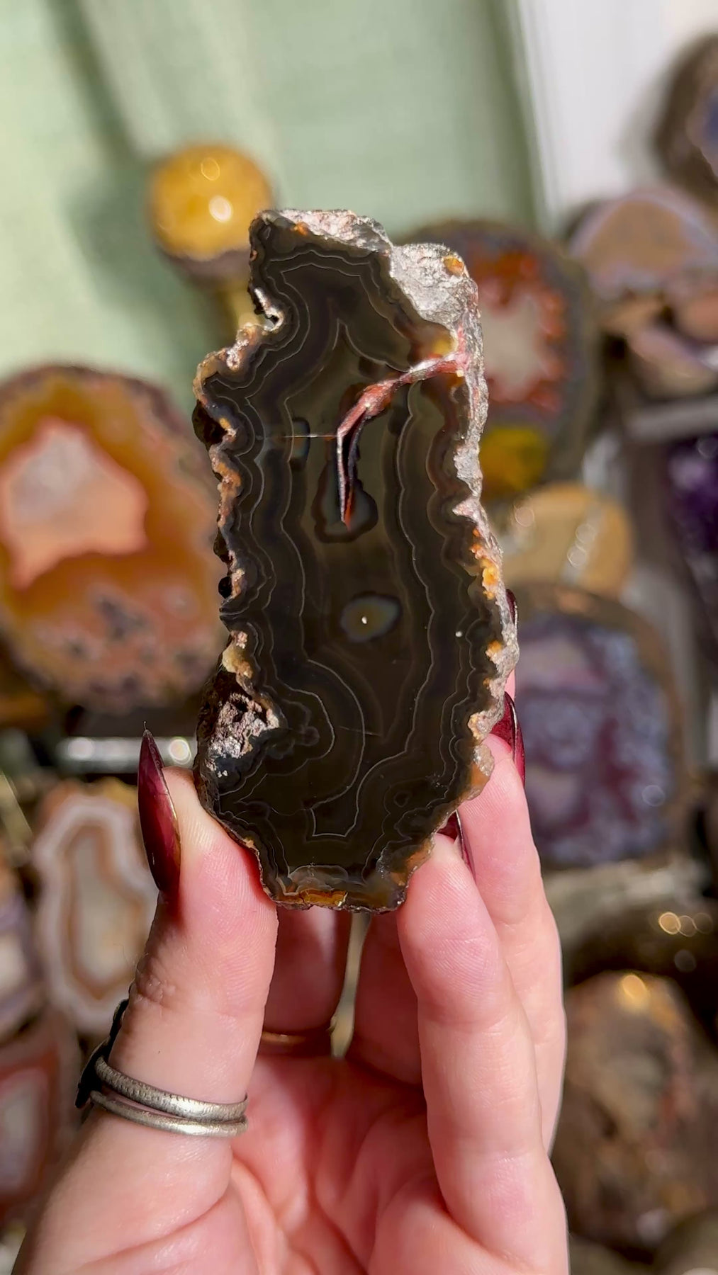 A distinctive brown, almost black Turkish agate with a red hematite reminiscent of "Red Fox" agates.