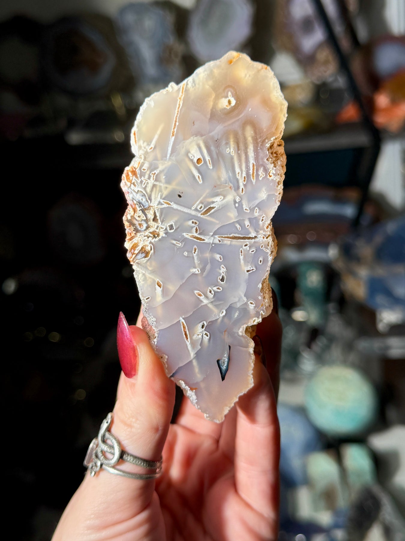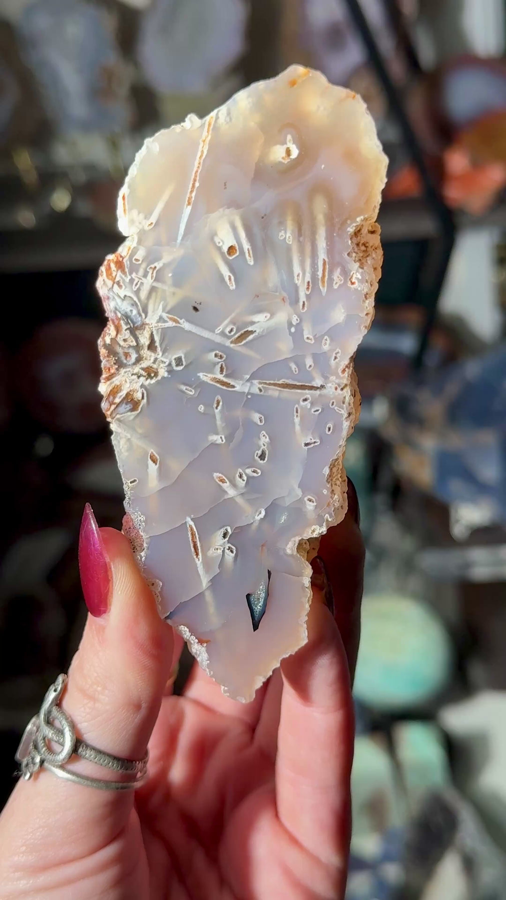A Turkish stick agate with pseudomorphing "sticks" amidst the agate
