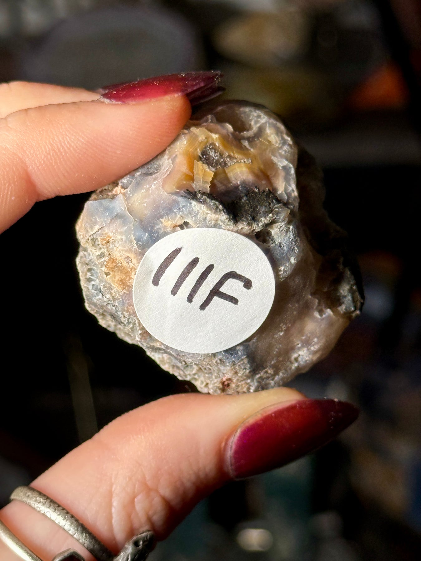A Laguna agate displaying crisp banding and rich yellow, characteristic of material from this iconic Mexican locality.
