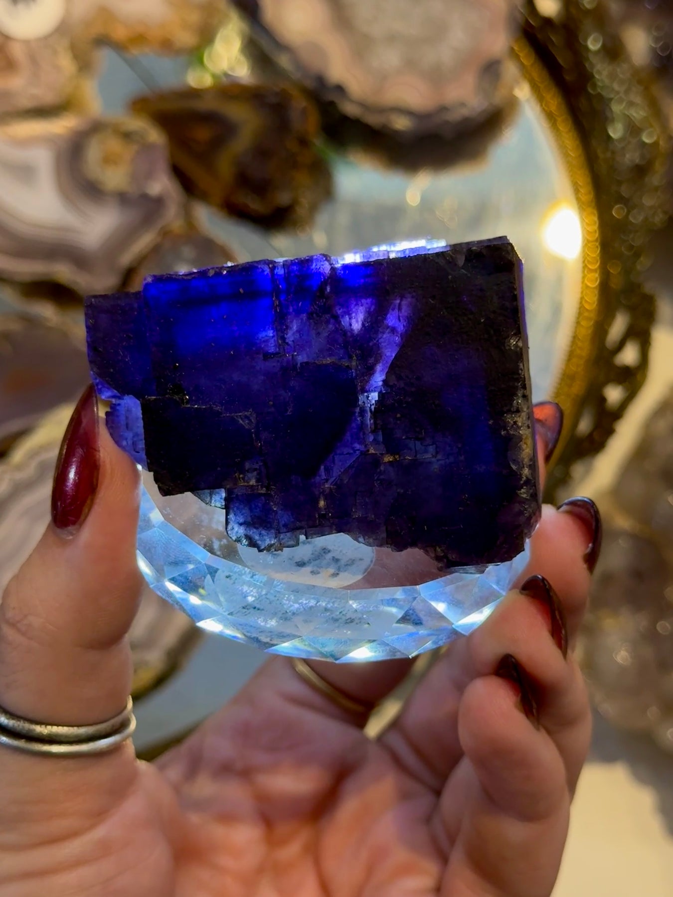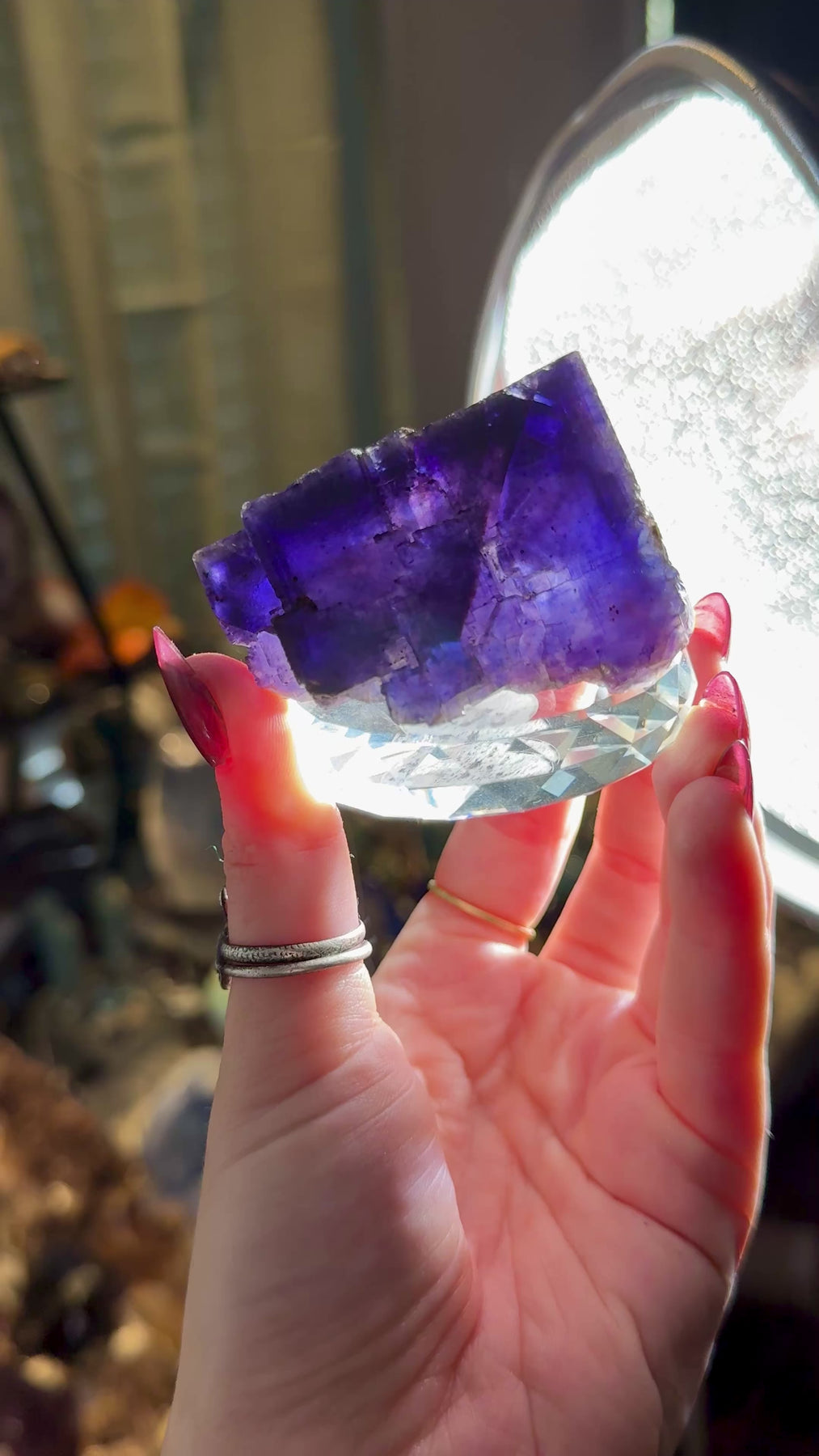A deep purple fluorite cube from Denton Mine, featuring crisp cubic form and rich coloration and zoning. A highly collectible example from one of Illinois’ most well-known fluorite localities.