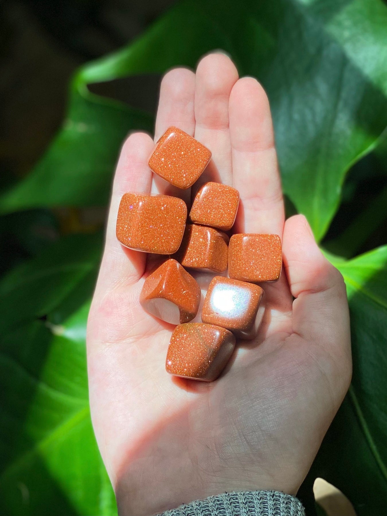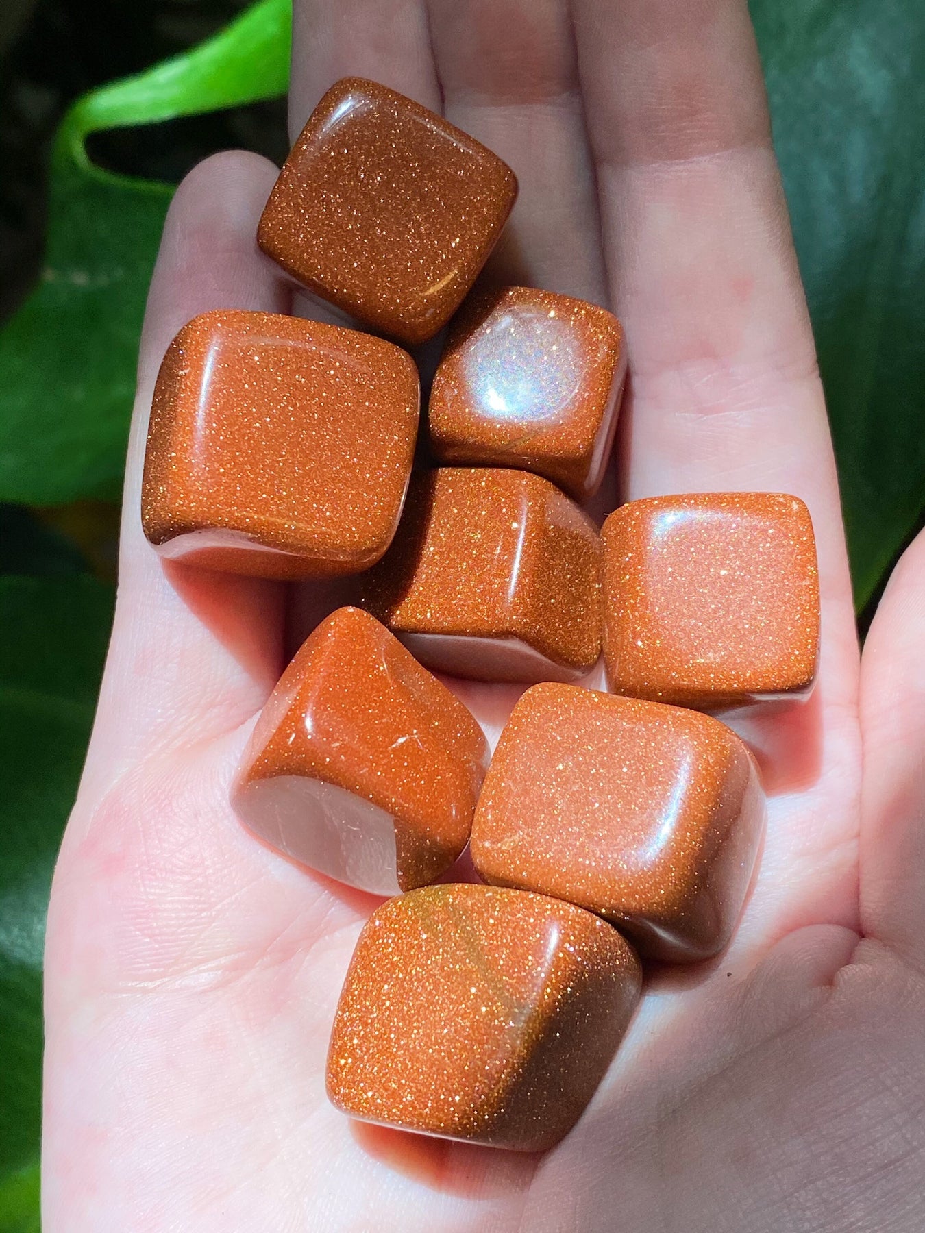 Goldstone is said to be the stone of ambition. It helps to build energy, courage, and confidence while also uplifting you. Goldstone is a synthetic crystal. Natural goldstone does not exist. Many believe it to still have energy of a natural crystal since it has natural copper flecks in it.