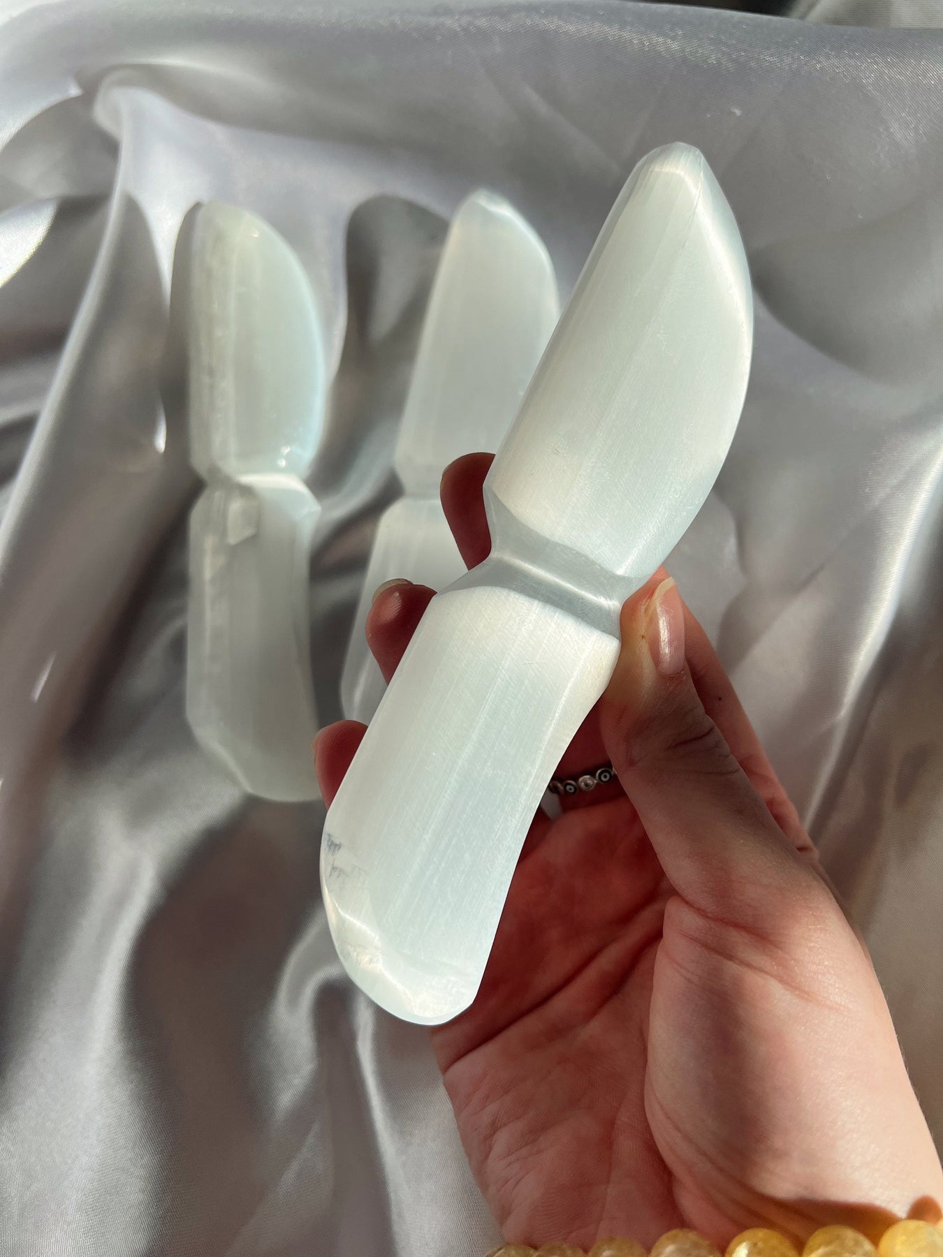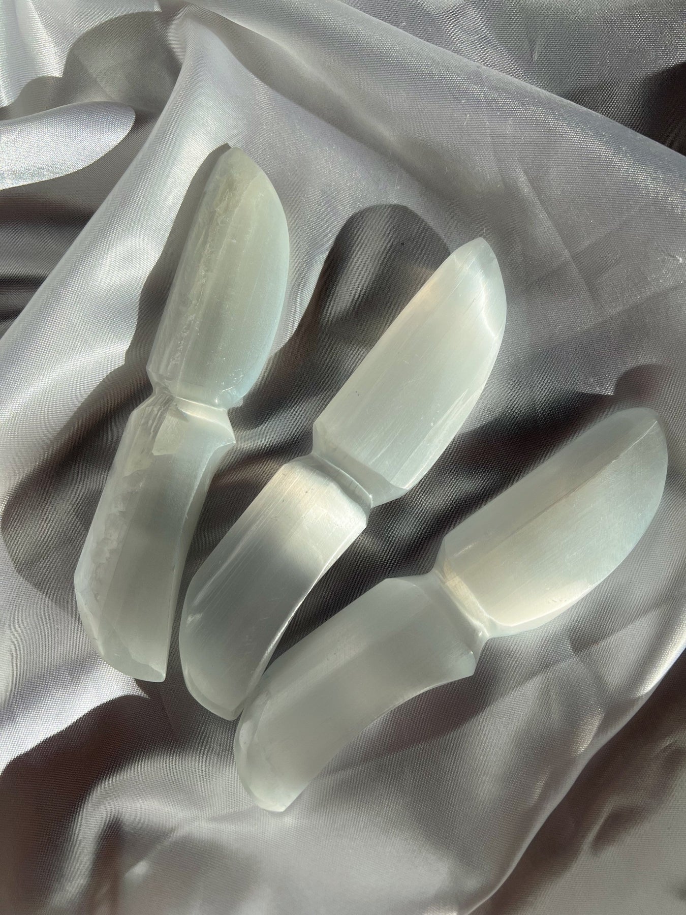 Selenite is a great meditation tool as it allows you to stay grounded. This stone is perfect for anyone who feels as if they would benefit from a rejuvenation of energy. This stone is great for placing at your bedside, workspace, or in a meditation room. The knife shape of these makes them great for cord cutting ceremonies.